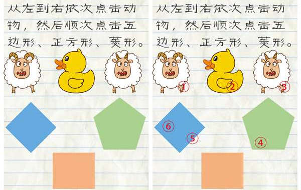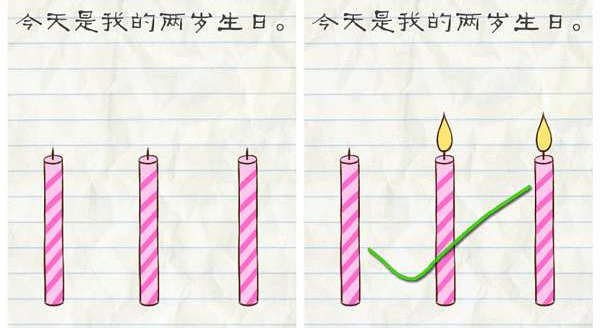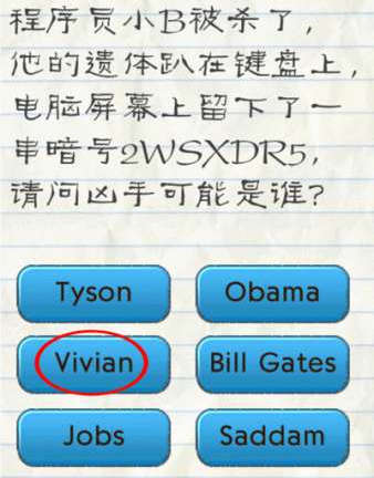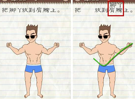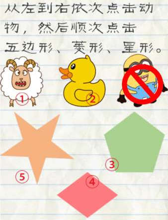 最囧游戲2第1關(guān)攻略:找到可以吃的食物 1.這關(guān)的鉆石是可以拖動(dòng)的,把鉆石拖動(dòng)到屎粑粑的下面; ![]() 2.就可以做出來一個(gè)冰淇淋,點(diǎn)擊冰淇淋就可以通關(guān)。 ![]() 最囧游戲2第2關(guān)攻略:幫海盜裝好鉤子手 1.其實(shí)海盜手上的鉤子就是問題那句話里面的問號,只要吧問號[?]移動(dòng)到海盜手上就可以了。 ![]() 最囧游戲2第3關(guān)攻略:從小到大,順次點(diǎn)擊撲克牌 1.其實(shí)這一關(guān)的撲克牌[6]是[9],所以順序是4 - 7 - 9 - 10 - K。 ![]() 最囧游戲2第4關(guān)攻略:找出不同的羊 1.這一關(guān)需要搖一搖手機(jī),持續(xù)搖晃手機(jī)5秒鐘,右下角的羊會被搖暈即可通關(guān)。 ![]() 最囧游戲2第5關(guān)攻略:哪一瓶是雪碧 1.這一關(guān)只要用手指將汽水上的污漬擦掉就可以看到雪碧了; ![]() 2.如下選擇第瓶真雪碧。 ![]() 最囧游戲2第6關(guān)攻略:tom的錢包丟了,讓他高興起來 1.只需要把手機(jī)倒過來就可以看到TOM的笑臉拉。 ![]() 最囧游戲2第7關(guān)攻略:迅速混在雞群中的五只鴨子 1.只要連續(xù)點(diǎn)出混在雞群中的鴨子,鴨子的嘴巴不一樣,只要雞群開始出現(xiàn)到結(jié)束,點(diǎn)擊完雞群里面的鴨子即可通關(guān)。切記是點(diǎn)5只,不要點(diǎn)多了。 ![]() 最囧游戲2第8關(guān)攻略:找出與眾不同的一只羊 1.其實(shí)這關(guān)最左下角是有兩只羊的,拖動(dòng)拉出其中一只,就會發(fā)現(xiàn),最左下角的羊的羊角跟其他羊長得不一樣,點(diǎn)擊這只羊就可以通關(guān)了。 ![]() 最囧游戲2第9關(guān)攻略:請把足球挪出屏幕 1.這關(guān)只要把題目上的足球兩個(gè)字拖動(dòng)出你的屏幕,就可以通關(guān)了。 ![]() 最囧游戲2第10關(guān)攻略:哪一瓶是可樂 1.這關(guān)使勁搖晃你的手機(jī),就能看見一瓶汽水流出來了,點(diǎn)擊該瓶汽水即可通關(guān)。 ![]() 最囧游戲2第11關(guān)攻略:移動(dòng)鼠標(biāo) 1.移動(dòng)鼠標(biāo)箭頭到下一關(guān)的按鈕上,然后點(diǎn)擊鼠標(biāo)的左鍵就可以進(jìn)入下一關(guān)了。 ![]() 最囧游戲2第12關(guān)攻略:誰是男扮女裝 1.把手機(jī)倒過來,就能看見男扮女裝的男人了,點(diǎn)擊那個(gè)男扮女裝的人就可以通關(guān)了。 ![]() 最囧游戲2第13關(guān)攻略:組合出最大的數(shù)值 1.最大數(shù)值就是無窮,只要把兩個(gè)0組合在一起,點(diǎn)擊確定就能通關(guān)了。 ![]() 最囧游戲2第14關(guān)攻略:叫醒小男孩isaac 1.叫醒小男孩,直接搖晃手機(jī),樹上的蘋果就會掉下來砸醒小男孩,也就通關(guān)了。 ![]() 最囧游戲2第15關(guān)攻略:找到五邊形 1.找到五邊形,把右邊的長方形拖動(dòng)到三角形下面,就形成了一個(gè)五邊形,點(diǎn)擊這個(gè)五邊形即可通關(guān)。 ![]() 最囧游戲2第16關(guān)攻略:按照從小到大的順序切開水果 1.按照從小到大的順序切開水果,南瓜不是水果,所以不要切南瓜。從小到大的順序就是草莓-梨子-西瓜,只要按照順序切開就能通關(guān)了。 ![]() 最囧游戲2第17關(guān)攻略:isaac尿急,幫他找到廁所 1.isaac尿急,幫他找到廁所,只要把WC標(biāo)志上的裙子抹掉,就變成了男廁所,然后把isaac拖動(dòng)到廁所里面就可以通關(guān)了。 ![]() 最囧游戲2第18關(guān)攻略:組合出最小的數(shù)值 1.組合出最小的數(shù)值,先把數(shù)字按345排列,然后把問題上的小數(shù)點(diǎn)放在3的后面,點(diǎn)擊確定就能通關(guān)了 ![]() 最囧游戲2第19關(guān)攻略:甩干毛巾 1.甩干毛巾,甩干毛巾就是甩干毛巾,只要甩一甩手機(jī),毛巾就干了。甩的時(shí)候要小心哦,不要把手機(jī)甩出去了。 ![]() 最囧游戲2第20關(guān)攻略:牛頓又睡著了,一共出現(xiàn)了多少個(gè)Z 1.牛頓又睡著了,數(shù)數(shù)牛頓睡著一共出現(xiàn)了多少個(gè)Z,一定要仔細(xì)看數(shù)清楚哦。最后輸入答案的時(shí)候加上問題上的一個(gè)Z,就是正確答案了,輸入點(diǎn)擊確定即可通關(guān)。 ![]() 最囧游戲2第21關(guān)攻略:找到圓形 1.找到圓形,其實(shí)問題上的句號也是圓形哦,點(diǎn)擊那個(gè)句號即可通關(guān)。 ![]() 最囧游戲2第22關(guān)攻略:請讓每個(gè)盤子都盛上草莓 1.讓每個(gè)盤子都盛上草莓,只要把問題上的草莓拖動(dòng)到下面的空盤子上,即可通關(guān)。 ![]() 最囧游戲2第23關(guān)攻略:isaac的視力太差了,能不能幫他提高視力 1.幫isaac提高視力,只要把isaac眼鏡上的東西擦掉,即可通關(guān)。 ![]() 最囧游戲2第24關(guān)攻略:關(guān)閉即可進(jìn)入下一關(guān) 1.點(diǎn)擊右上角的X,然后點(diǎn)擊下一關(guān)即可進(jìn)入下一關(guān)。 ![]() 最囧游戲2第25關(guān)攻略:把腳丫放到肩膀上 1.把腳丫放到肩膀上,只要把問題上的腳丫放在肩膀上面即可通關(guān)了。 ![]() 最囧游戲2第26關(guān)攻略:哪個(gè)杯比較大 1.哪個(gè)杯比較大,不是讓你看手上的杯子多大,而是罩杯!點(diǎn)擊罩杯最大的那個(gè)女人就可以通關(guān)了。 ![]() 最囧游戲2第27關(guān)攻略:點(diǎn)擊三個(gè)數(shù)字,使他們相加等于十 1.點(diǎn)擊三個(gè)數(shù)字,使他們相加等于十。題目只說點(diǎn)擊三個(gè)數(shù)字,沒有說一個(gè)數(shù)字不可以點(diǎn)兩次,所以數(shù)字1點(diǎn)兩次,再數(shù)字8點(diǎn)1次,就相加等于十啦。 ![]() 最囧游戲2第28關(guān)攻略:程序員小B被殺了,他的遺體趴在